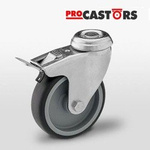 ( ilość produktów: 3 )Zestaw kołowy skrętny z hamulcem KMA-TPA 100S-HC z szarą gumą piasta polipropylen Nośność 90 kg / 100mm/ ślizgowe