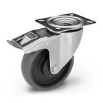 Kółko obrotowe skrętne z hamulcem KPE-WTE 100K1-HC transportowe przemysłowe z blokadą z szarą gumą piasta polipropylenowa Nośność 100 kg / 100mm/ kulkowe