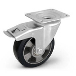 Kółko obrotowe z hamulcem KPM-ALGE 100K-HC przemysłowe transportowe z kołem pełnym gumowym piasta aluminium. Nośność 160 kg / 100mm/ kulkowe