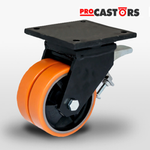Podwójne koło transportowe obrotowe z hamulcem KPWD-ZPU 300K-HC z bieżnikiem poliuretanowym. Duża Nośność 4000 kg / 300mm/ kulkowe