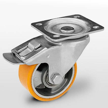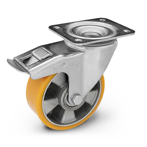 200 kg 100mm Koło obrotowe transportowe skrętne z hamulcem KPM-ALPU 100K-HC z kołem aluminiowym z bieżnikiem poliuretanowym