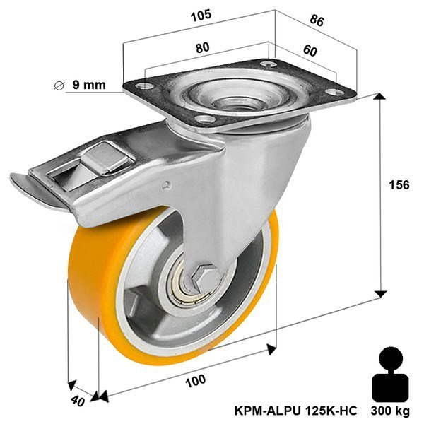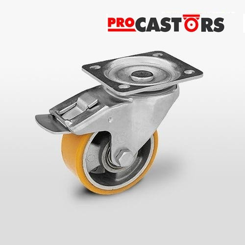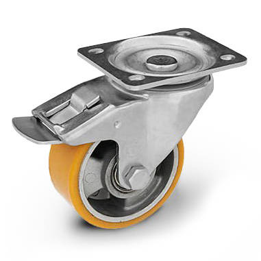 Kółko transportowe fi 125 mm 300 kg obrotowe z hamulcem do dużych obciążeń LO-SBM-ALPU 125K-HC aluminiowo-poliuretanowe