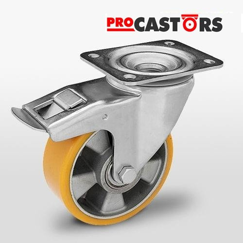 Kółka do wózka transportowe z hamulcem 200 mm 500 kg obrotowe transportowe do dużych obciążeń KPM-ALPU 200K-HC 500 kg / 1500-2000 kg Kóka skrętne do wózków platform 20cm Zestaw kołowy