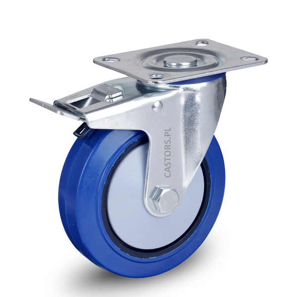 230 kg Kółko transportowe z hamulcem do wózka LO-SBM-BLURU 125K-HC kółko gumowe niebieskie. Nośność 230 kg / 125mm/ kulkowe